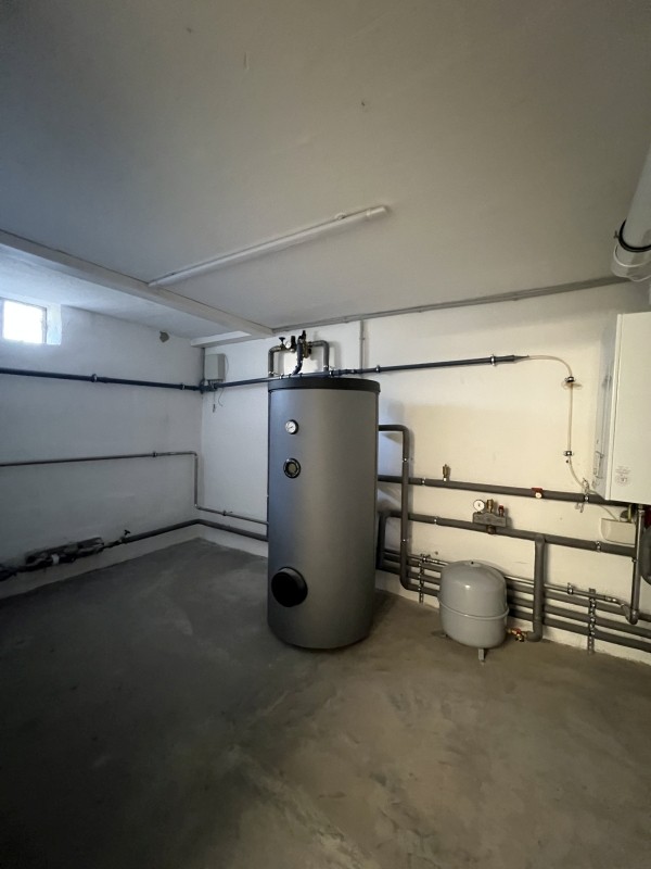 - Zentralheizung im KG zur Wärmeerzeugung und Warmwasseraufbereitung